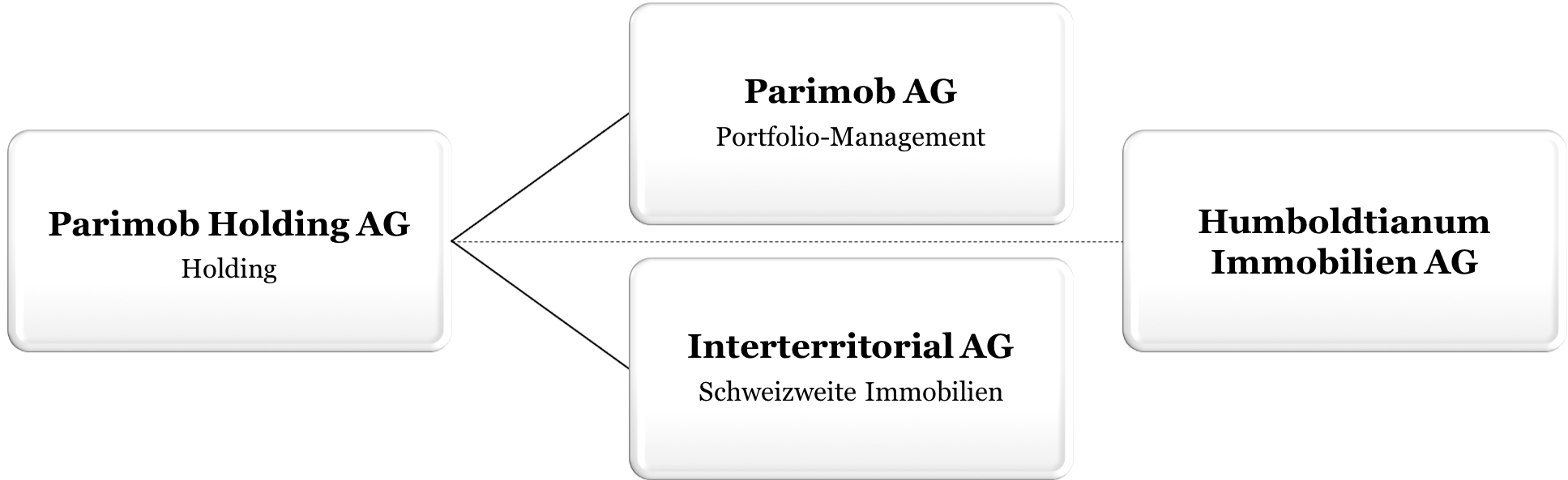 Die Parimob Holding AG ist die Muttergesellschaft von Parimob AG, Bern, welche im Bereich des Portfolio-Managements tätig ist, sowie der Interterritorial AG, Bern, welche Eigentümerin eines Schweizweiten Immobilien-Portfolios ist.